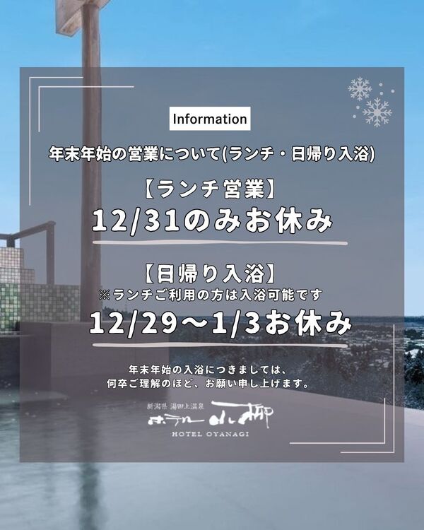 日頃よりご愛顧いただき誠にありがとうございます。年末年始のご案内でございます。ランチ営業は12月31...